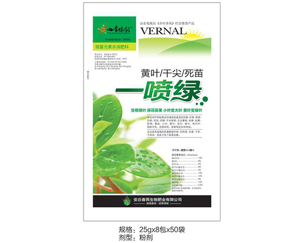 安丘春雨生物肥業(yè)有限公司創(chuàng)建于1998年,她座落于世界風(fēng)箏之都風(fēng)景秀麗的青云山腳下,是農(nóng)業(yè)部定點(diǎn)生產(chǎn)企業(yè),擁有一流的科研人員和國(guó)內(nèi)*的自動(dòng)流水線及健全的質(zhì)量管理體系。十幾年來,成功開發(fā)出含微量元素水溶肥料、含氨基酸水溶肥料、含大量元素水溶肥料、土壤改良調(diào)理劑、植物生長(zhǎng)調(diào)節(jié)劑等近千個(gè)品種,得到廣大客戶的好評(píng)。