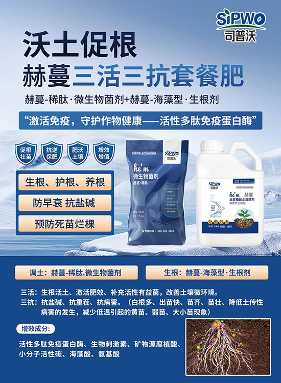 赫蔓•海藻型生根劑與赫蔓微生物菌劑 雙管齊下,養護根系,活化土壤,為作物構建健康茁壯的生長基礎。